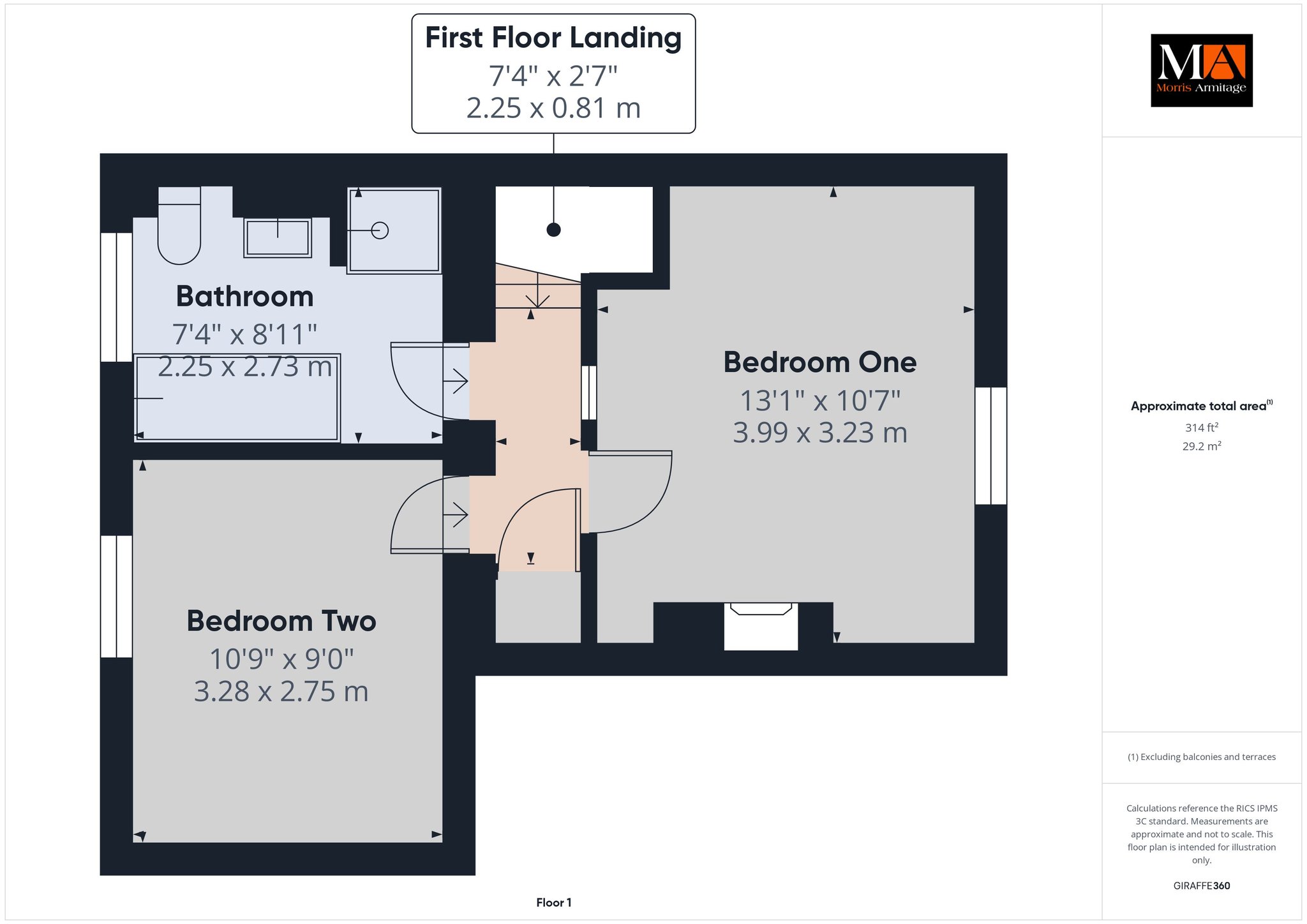 Bedroom Two 10’9” x 9’0” (3.28m x 2.75m)