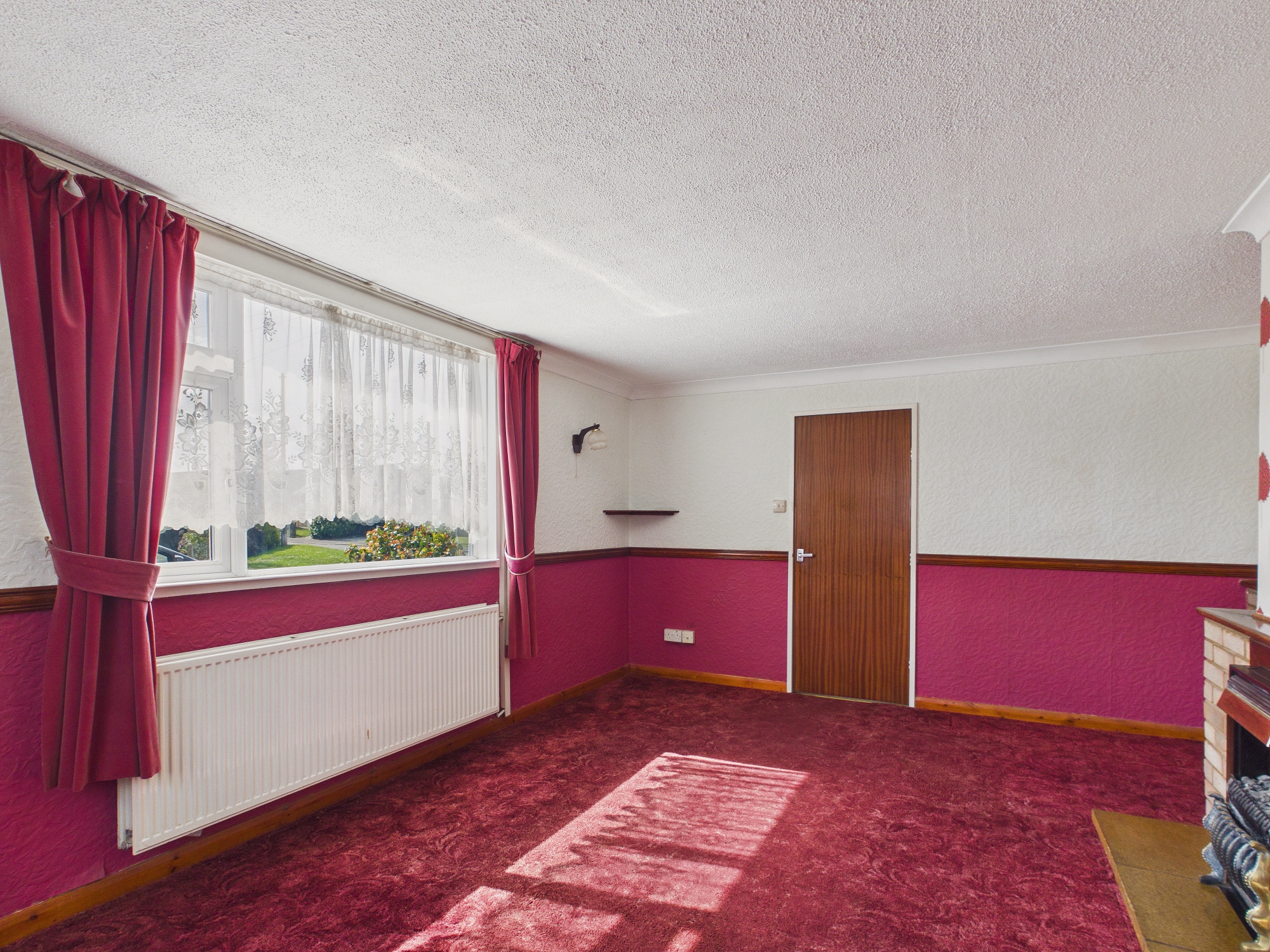 Double glazed windows to both front and side aspects, central brick fireplace, double panel radiator, door to:-