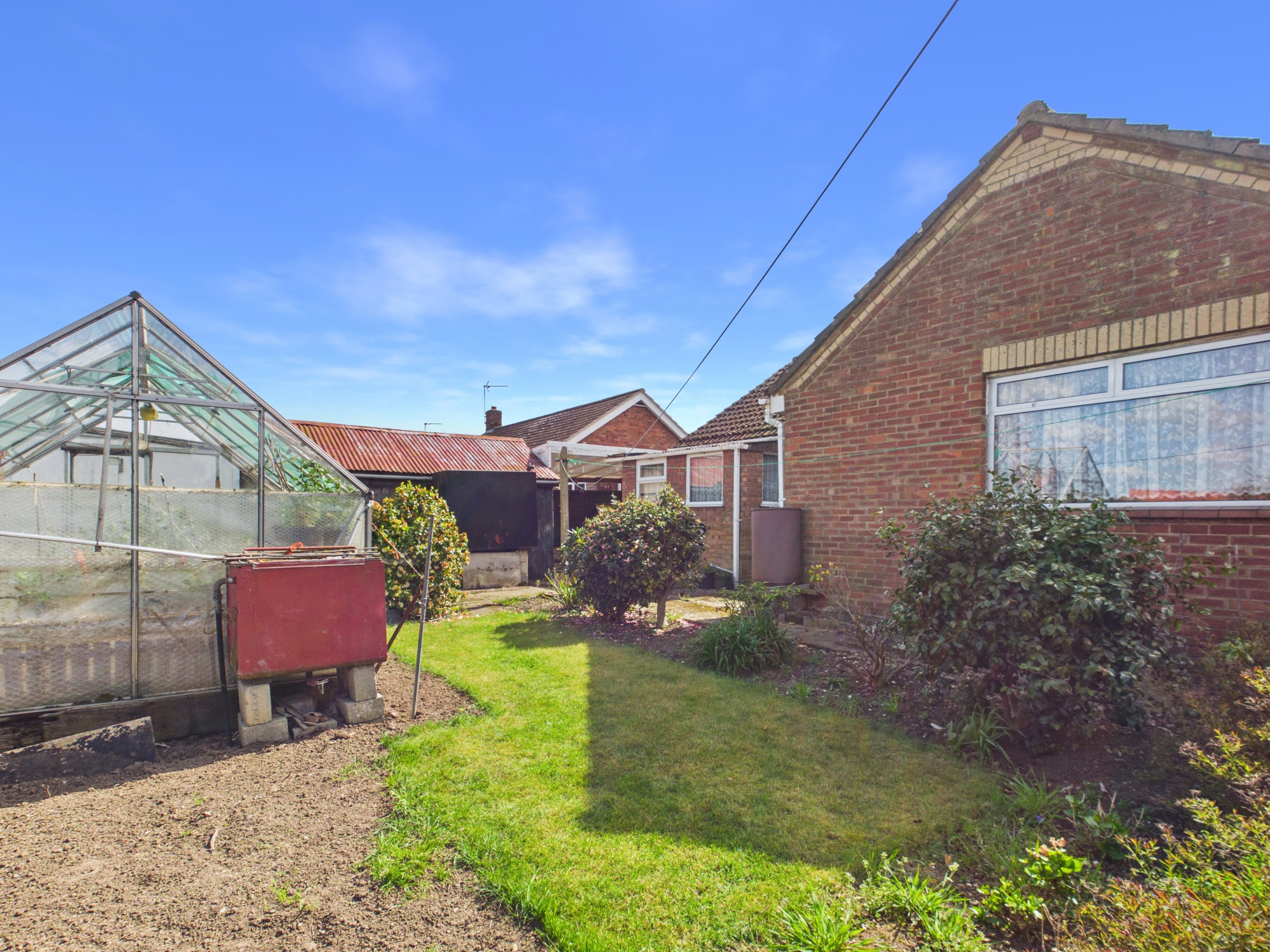 A low level, brick wall extends across the front of the property enclosing the front lawn. A long driveway extends to the side leading to a timber garage. Around to the rear, the garden is a combination of vegetable patches and growing areas along with mature flowers and shrubs. There is a small area of lawn along with greenhouse and timber storage shed. The bungalow leads directly to the allotments positioned behind, and the owners have enjoyed the benefit of one of these for many years. It is advised to contact the local Council if this is something a prospective purchaser wished to continue with.