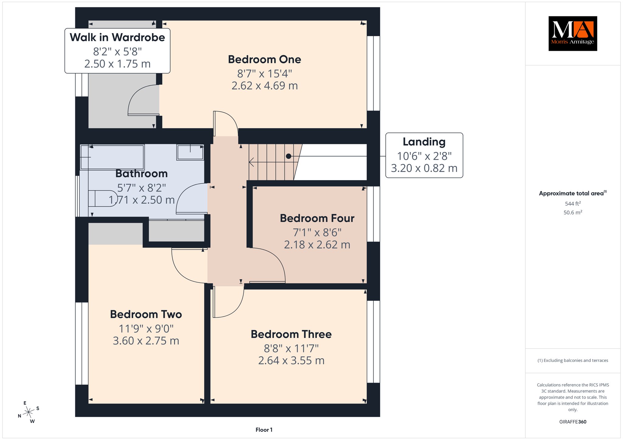 Bedroom One 15’4” x 8’7” (4.69m x 2.62m)