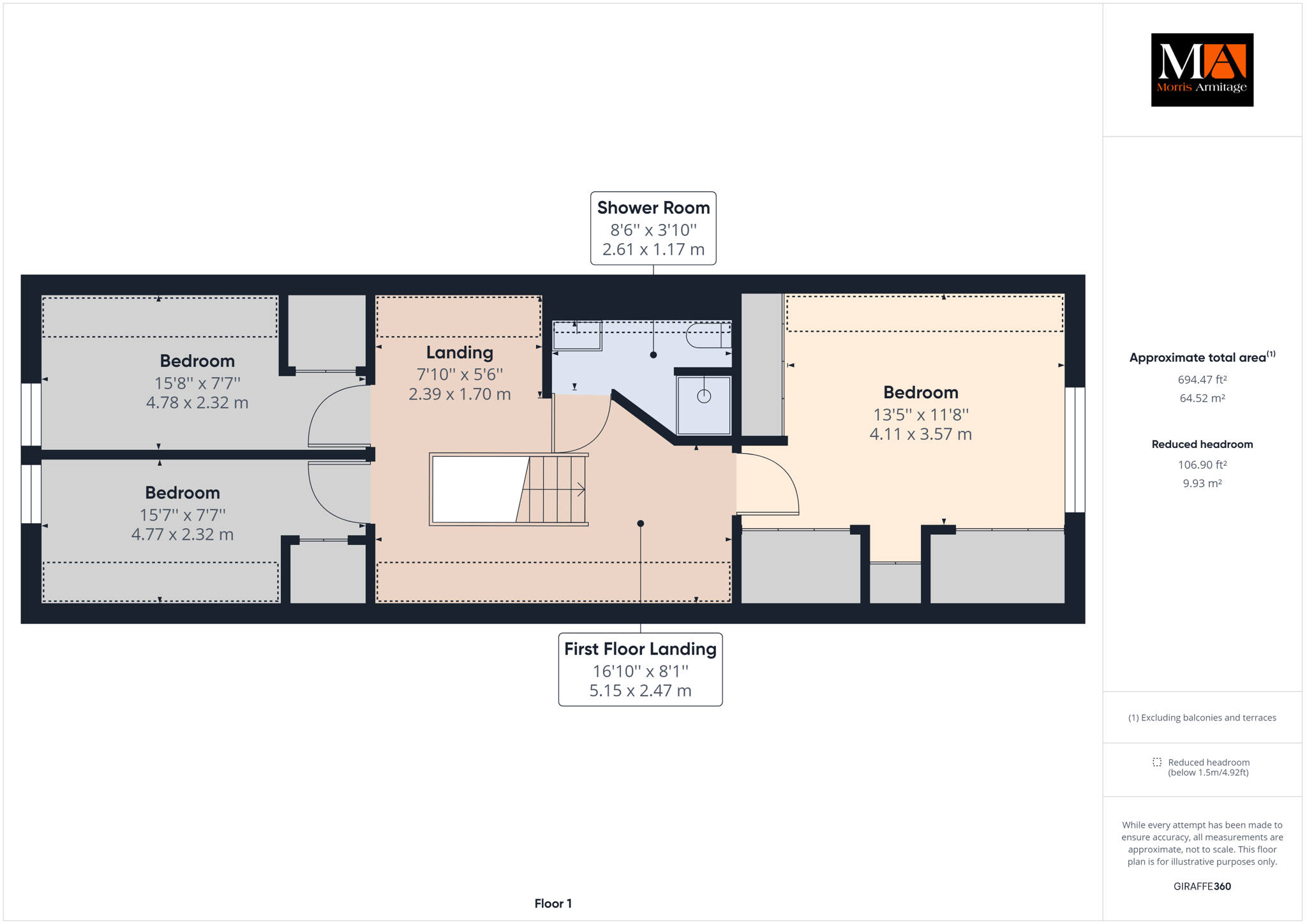 A galleried area, spacious enough to accommodate a study area. Three Velux windows inset to ceiling, double panel radiator, access to loft space, inset ceiling spotlights, doors to all rooms.