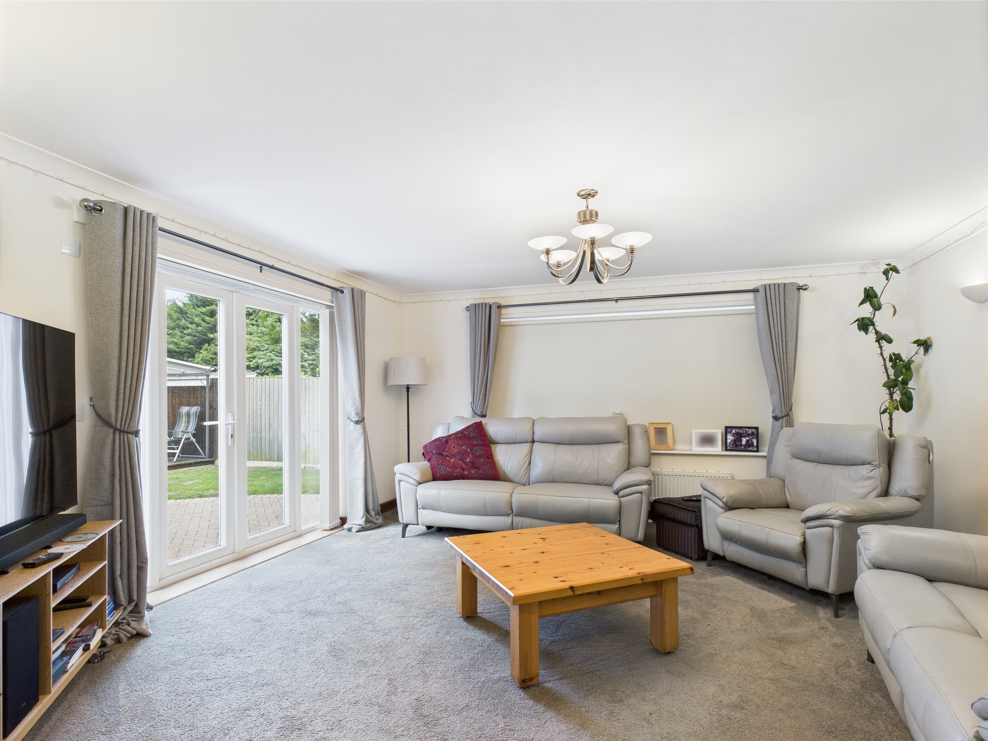 Filled with natural light via uPVC double glazed side window and uPVC double glazed patio doors that open onto the garden. Wall mounted contemporary radiator, further double panel radiator, coved ceiling, opening leading through to:-