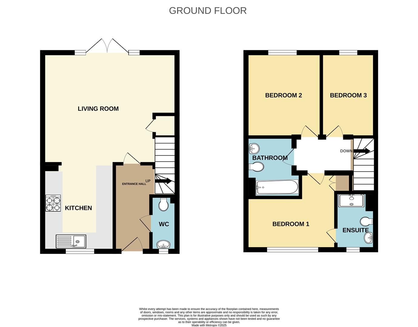 With doors leading to living/dining room and cloakroom. Stairs to first floor.