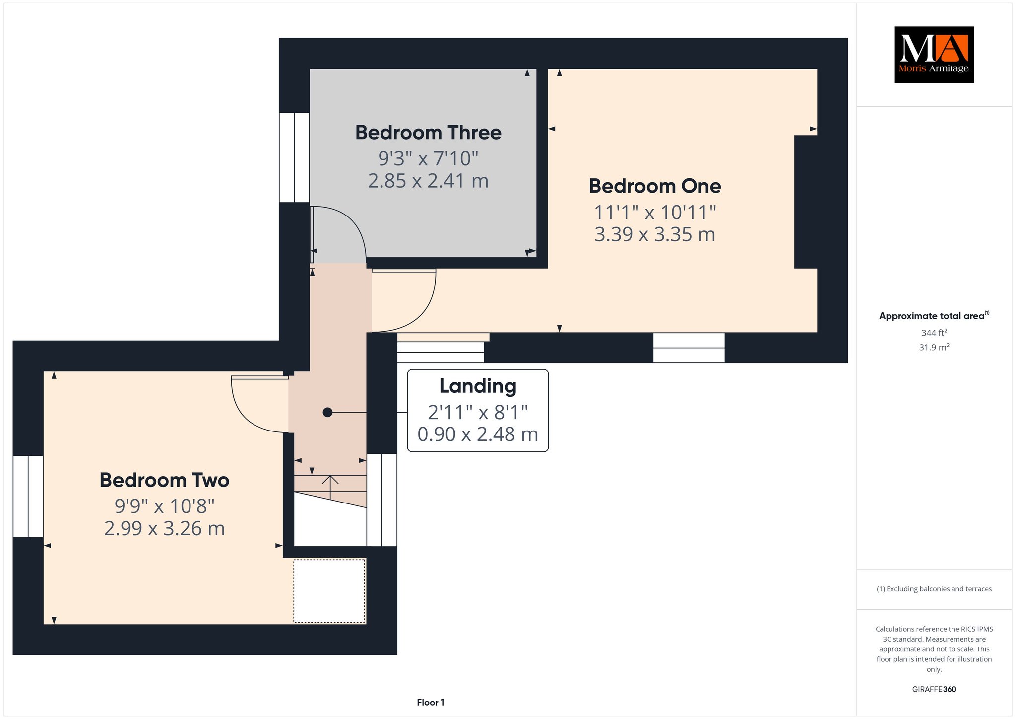 Bedroom Three 9’3” x 7’10” (2.85m x 2.41m)