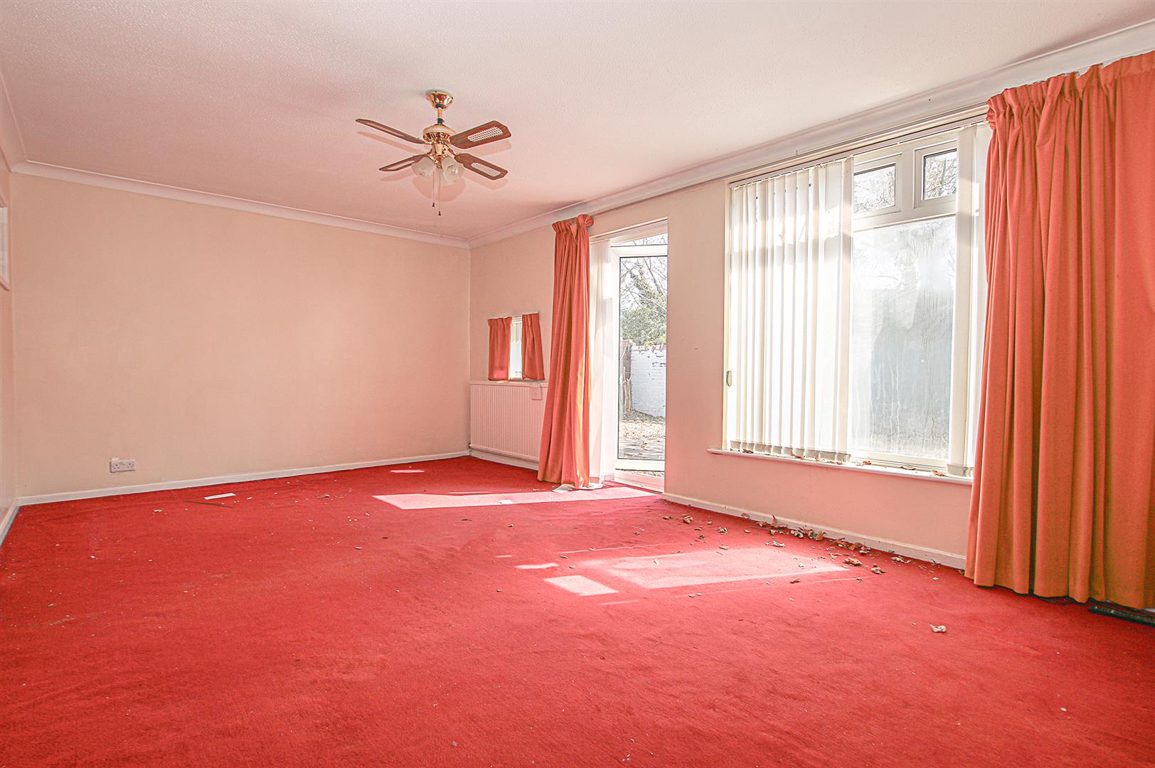 Spacious living room with dual windows overlooking rear garden. Radiator. Glazed door to rear garden. Door to entrance hall.