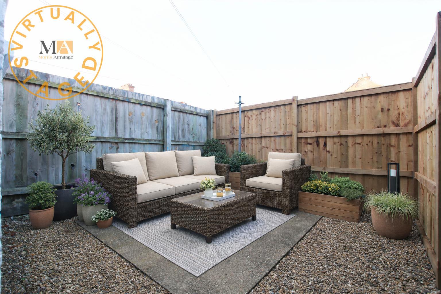 Full enclosed rear garden, gated access leads to a side passage way between the neighbouring property. Outbuilding for storage with space and plumbing for washing machine and further storage cupboard.
