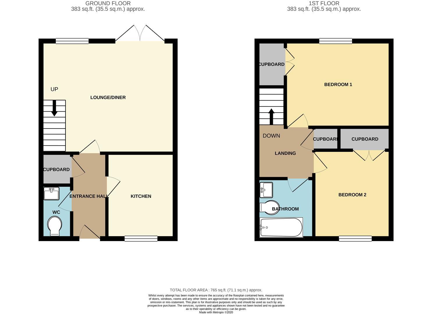 With doors leading to the kitchen, lounge/dining room and cloakroom. Built-in storage cupboard.