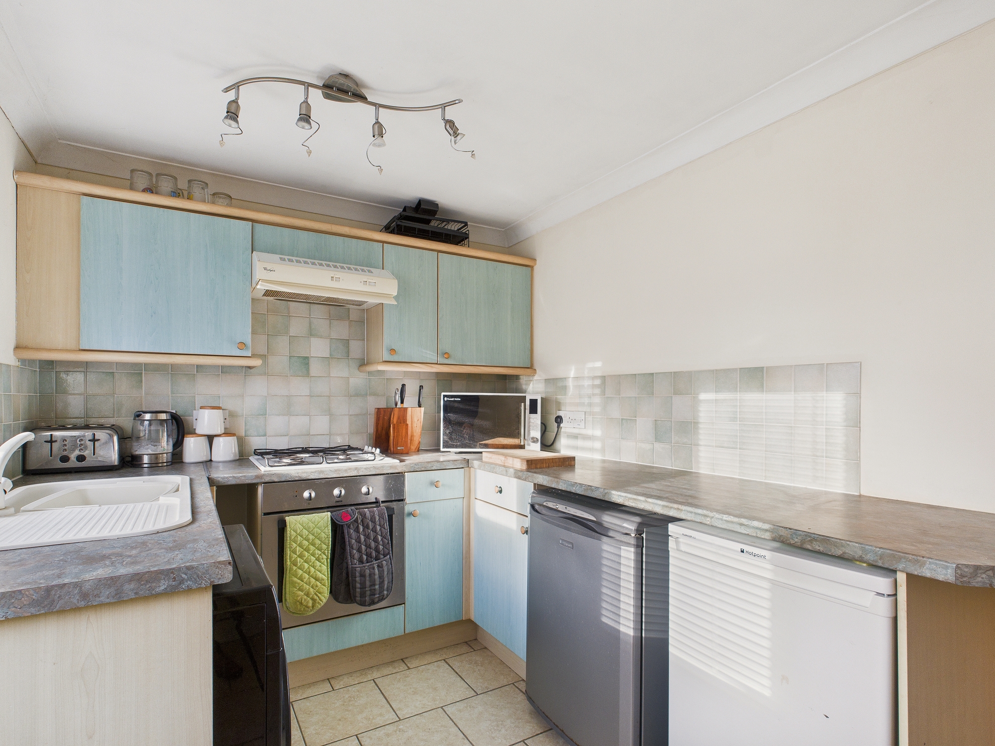 UPVC double glazed window to the rear aspect, double panel radiator, fitted with a range of wall and base units with round edge worktops over, extending to the breakfast bar. Inset sink and drainer unit inset with mixer taps over, 4 ring gas hob with stainless steel oven under and extractor over, tiled splashbacks, space for appliances, coved ceiling, ceramic tiled flooring, uPVC double glazed rear access door.
