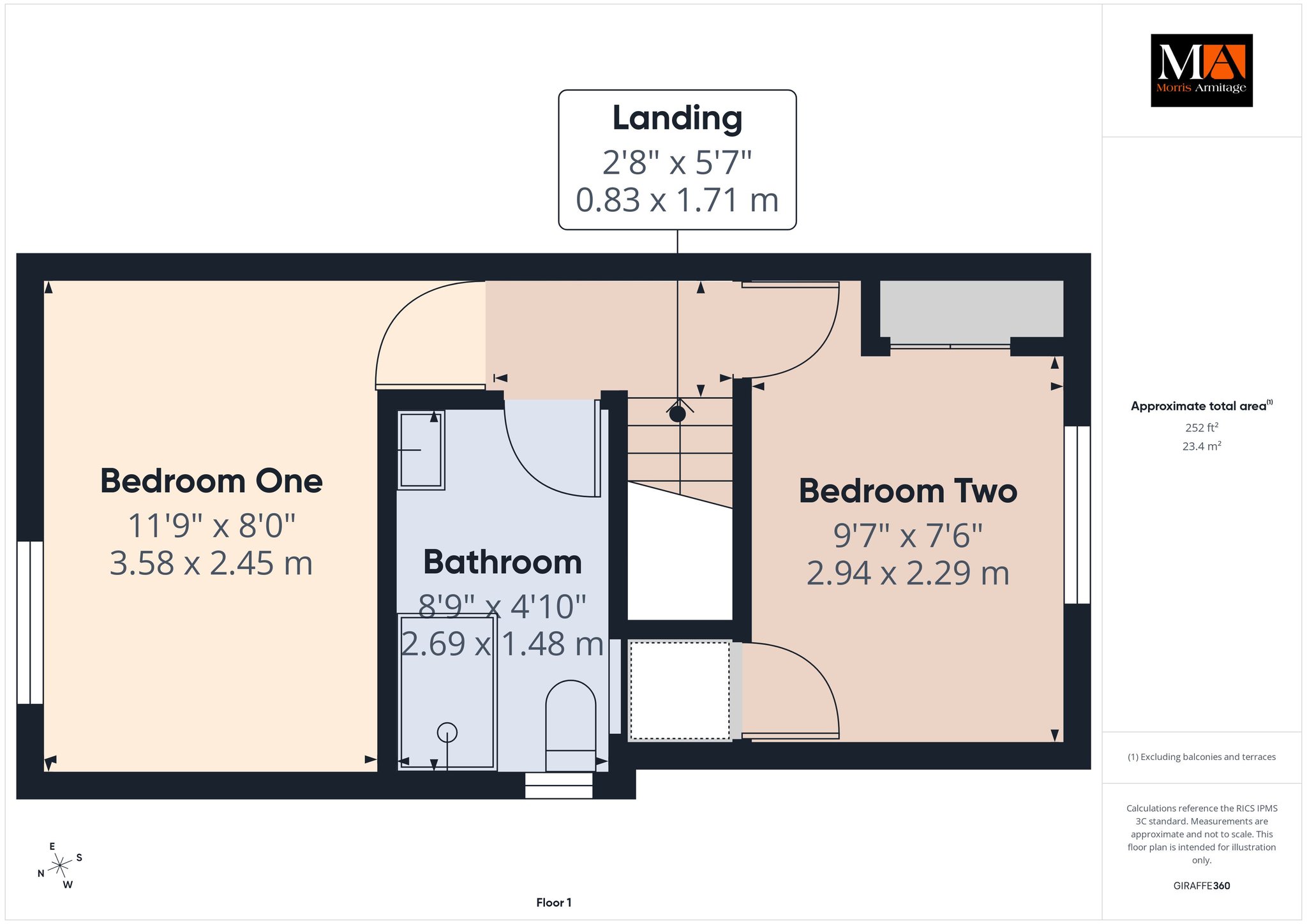 Bedroom One 11’9” x 8’0” (3.58m x 2.45m)