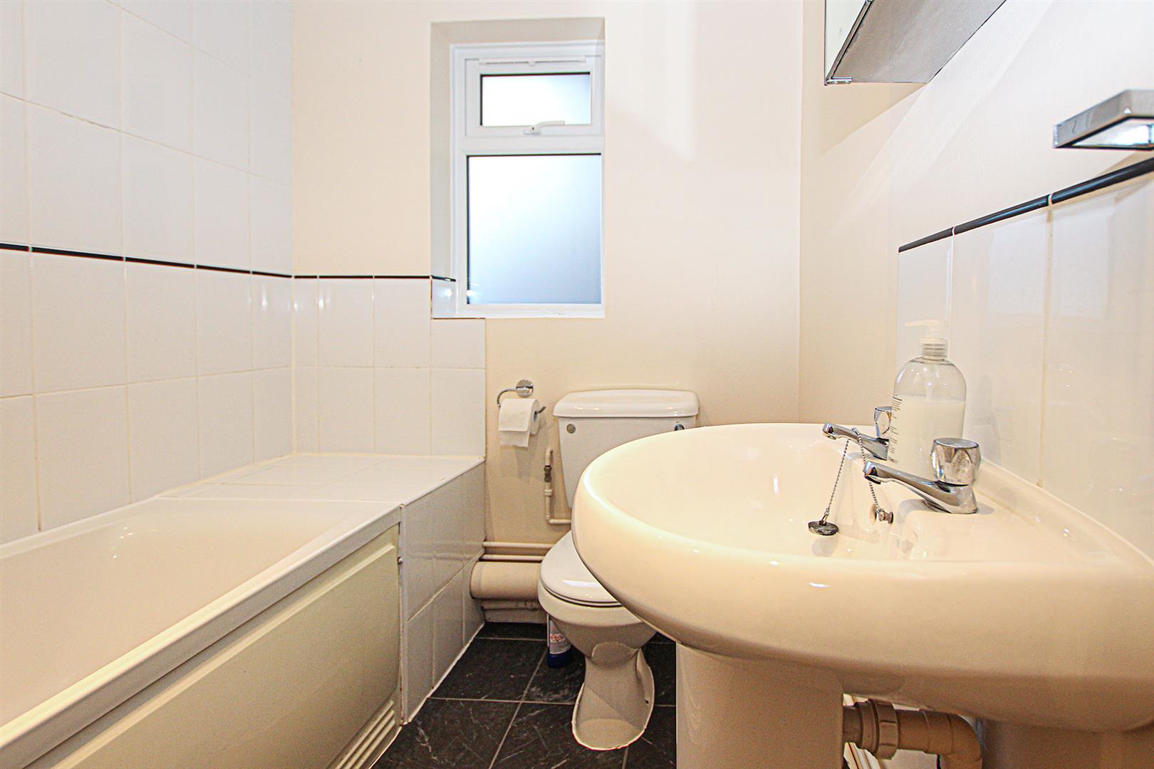 With panelled bath with shower attachment over, low level WC, pedestal hand basin, uPVC window to side aspect.