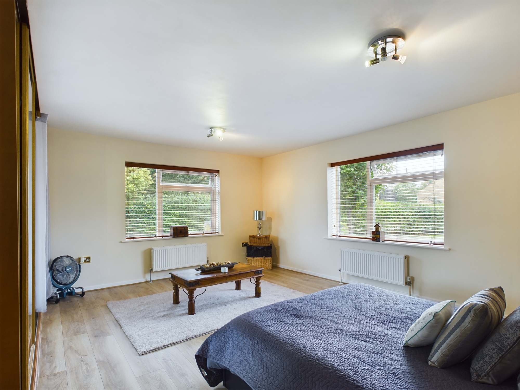 UPVC double glazed large bay windows to side aspect, 2 x wall mounted double panel radiators, central fireplace with electric fire inset, laminate style flooring, coved ceiling.