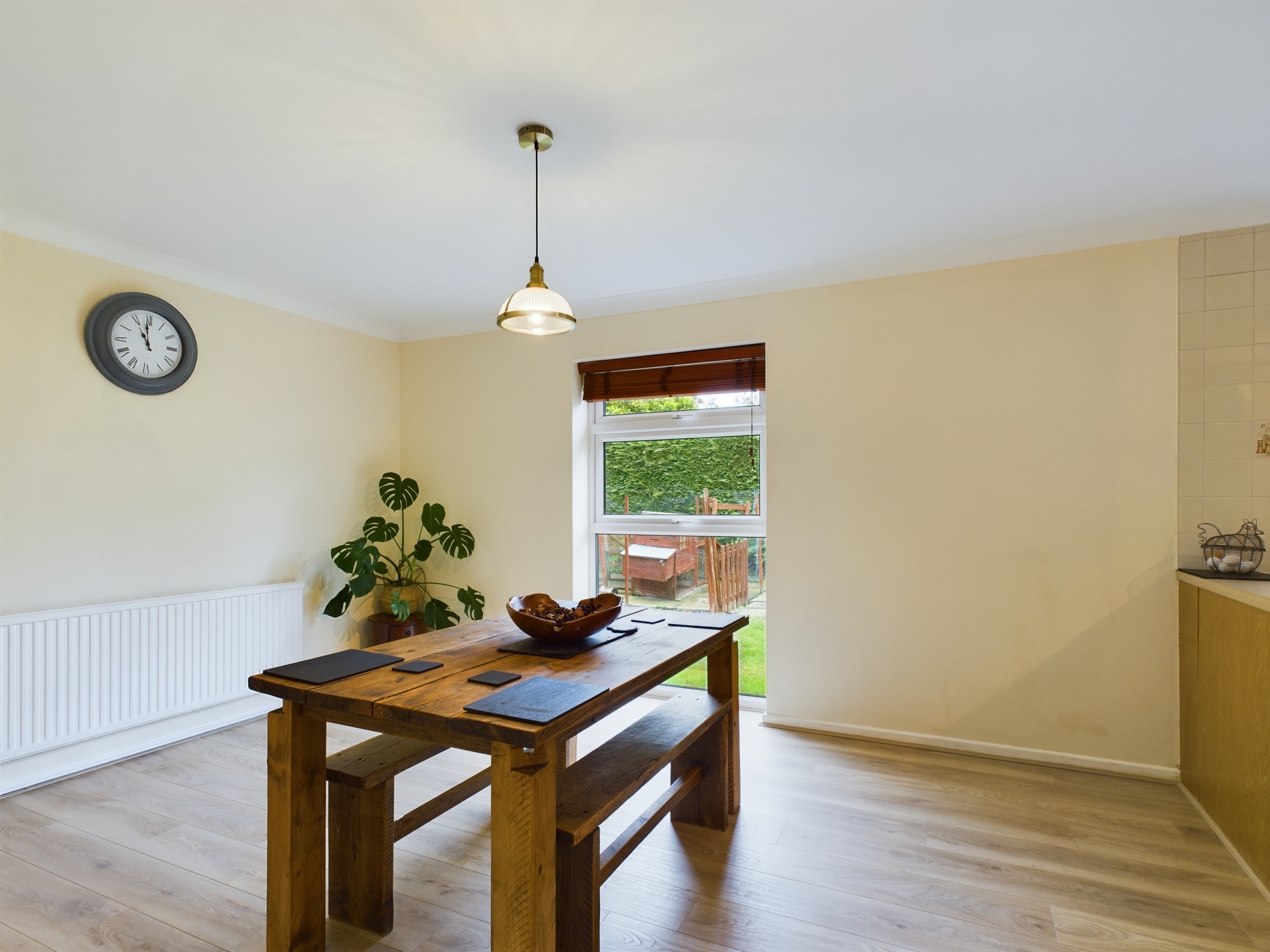 Inside, the heart of the home is a well-proportioned kitchen/diner, flowing seamlessly into the lounge with its charming bay window that frames views of the side gardens. The layout is designed for easy living, with a side entrance lobby leading to three double bedrooms—two featuring built-in wardrobes—plus the family bathroom. The front hallway leads to the principal bedroom, an impressively sized retreat with dual-aspect windows and its own built-in wardrobes. A utility room and cloakroom complete the practical accommodation. The property has had the benefit of a new central heating boiler in 2023, located within a boiler room.
