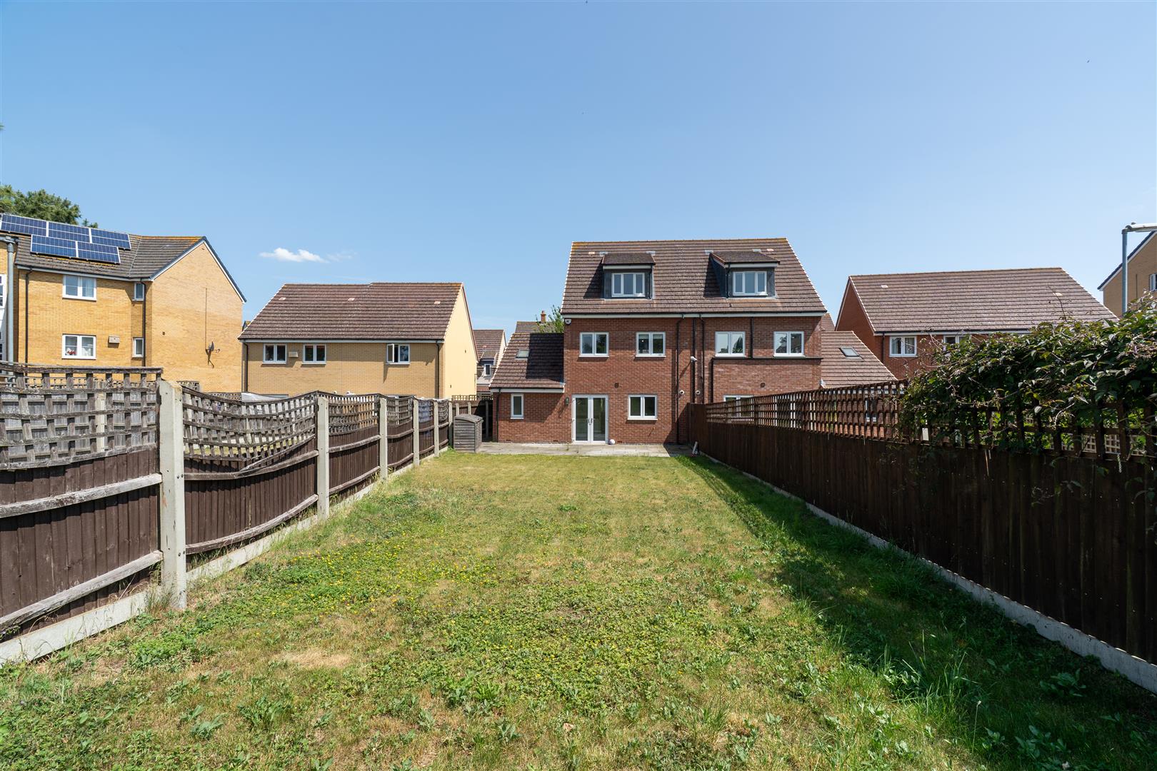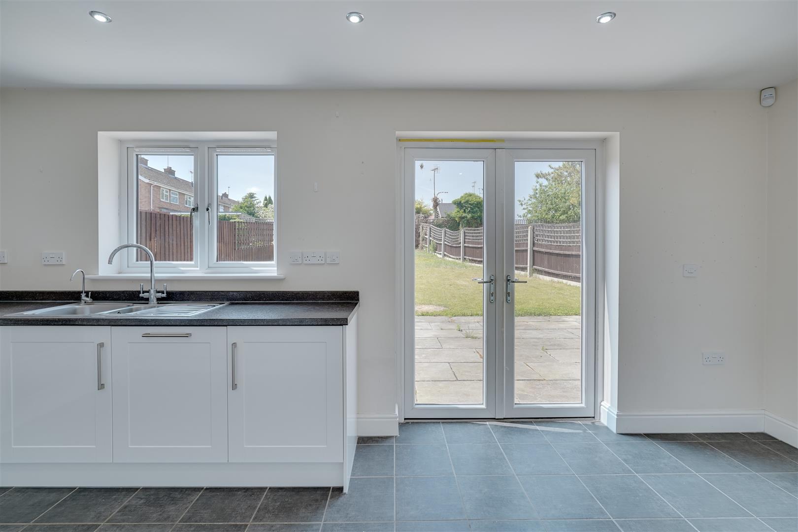 Patio area to rear of the house with French doors leading to kitchen/diner. Generous lawned area. Access gate to the front.