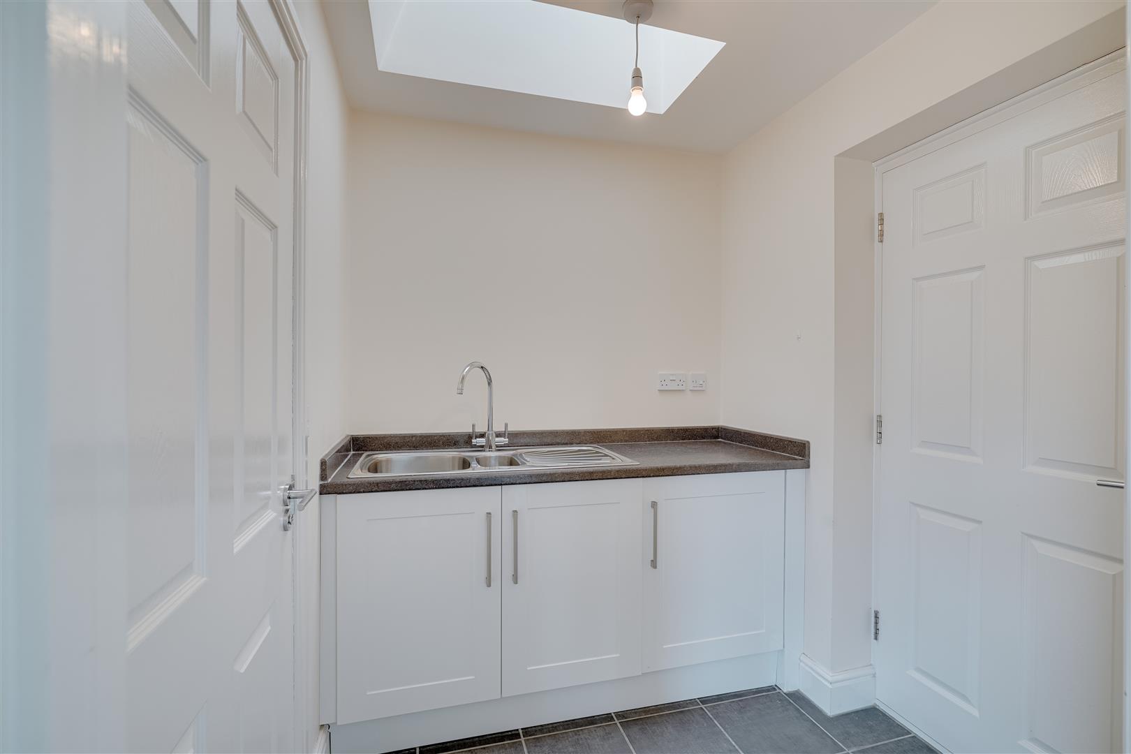 Modern bas cupboards with worktop over. Stainless steel 1 1/4 bowl sink and drainer with mixer tap over. Integrated washing machine. Tiled flooring. Velux window. Doors to kitchen/diner, cloakroom and garage.