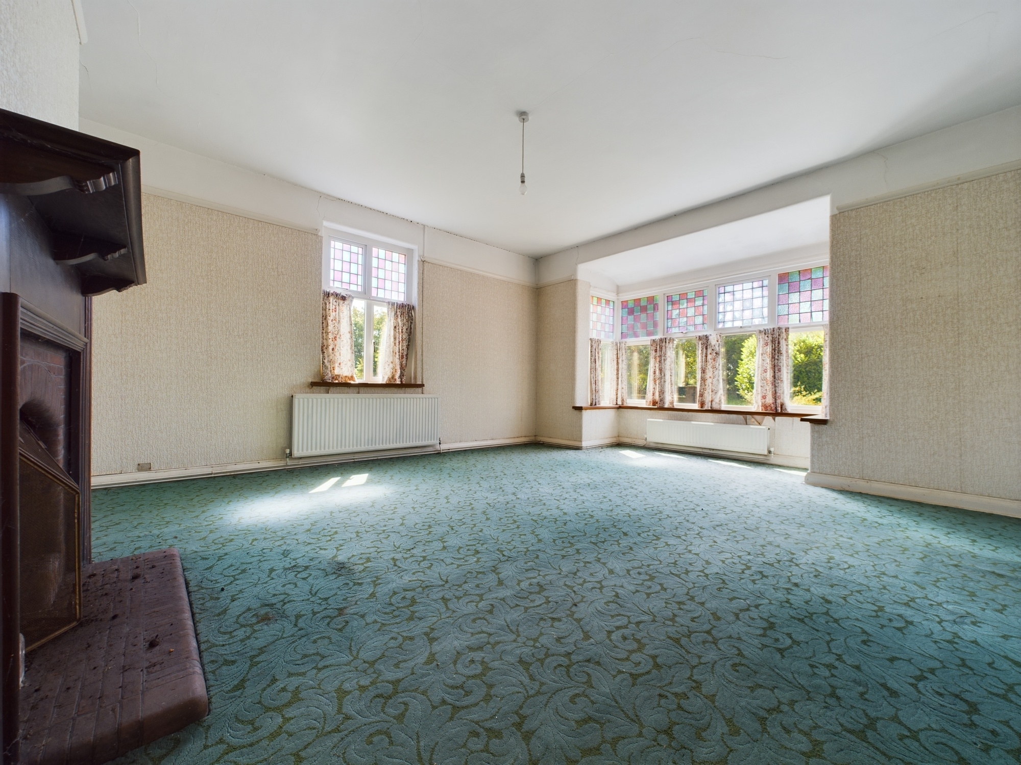 uPVC double glazed window to side, uPVC double glazed bay window to front, two wall mounted double panel radiator, original brick built central fireplace with open fire inset and wooden surround and mantle.